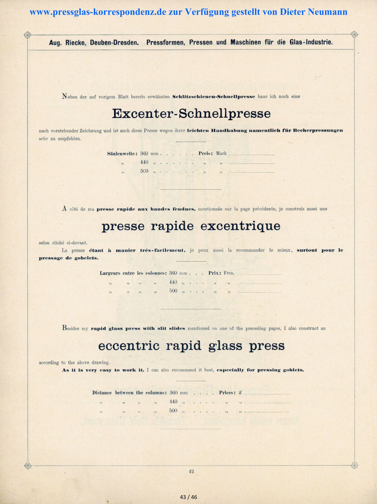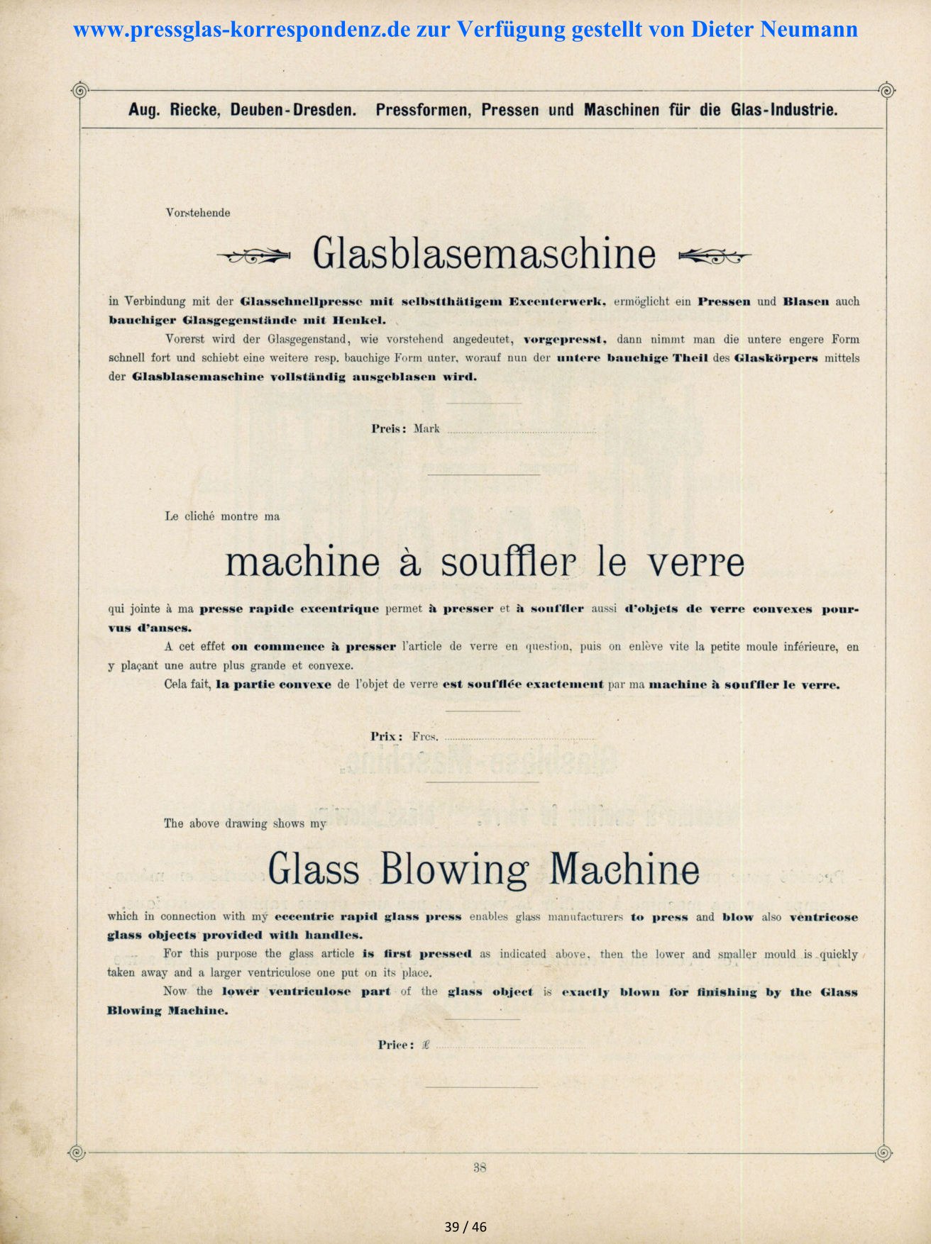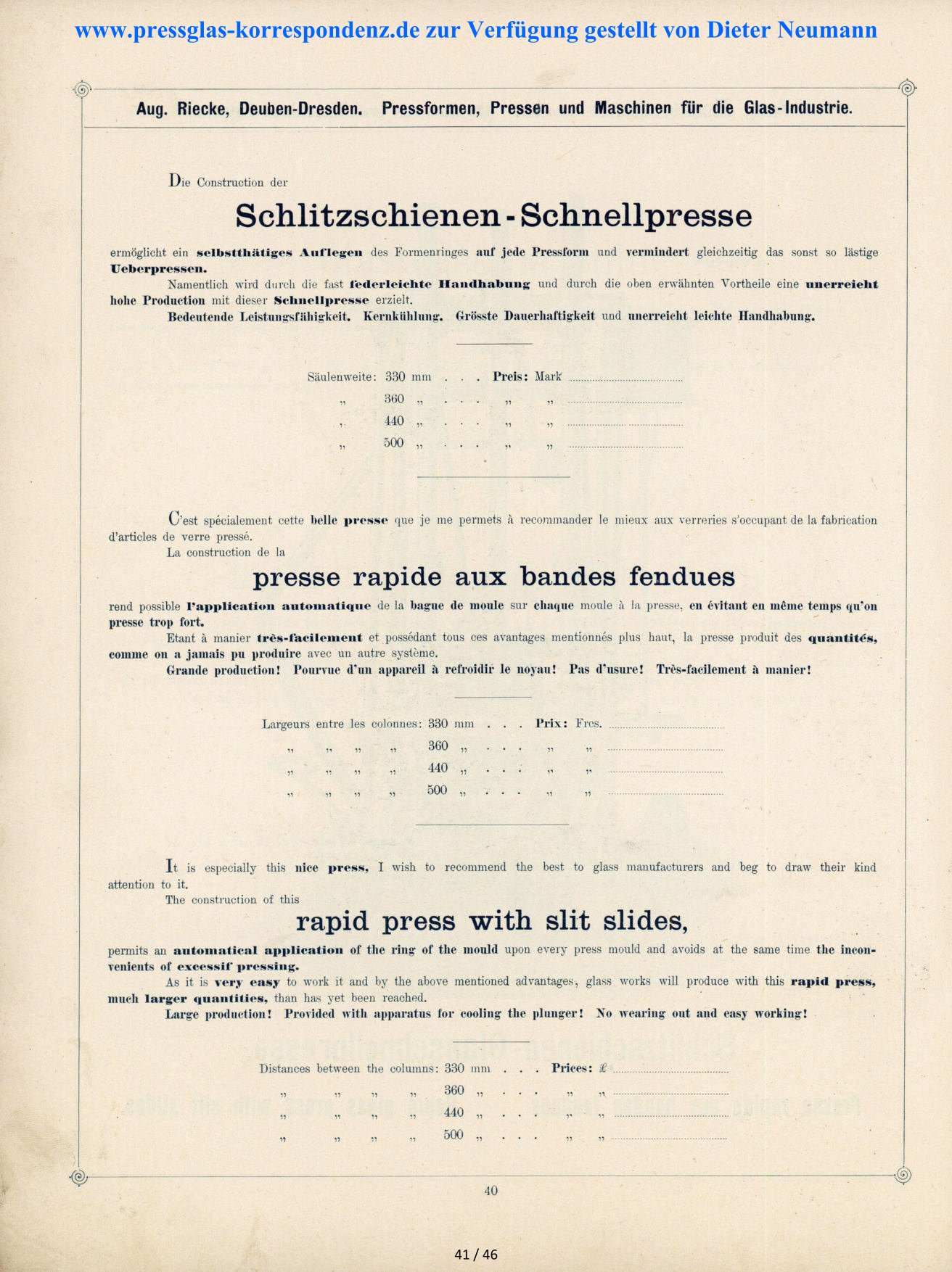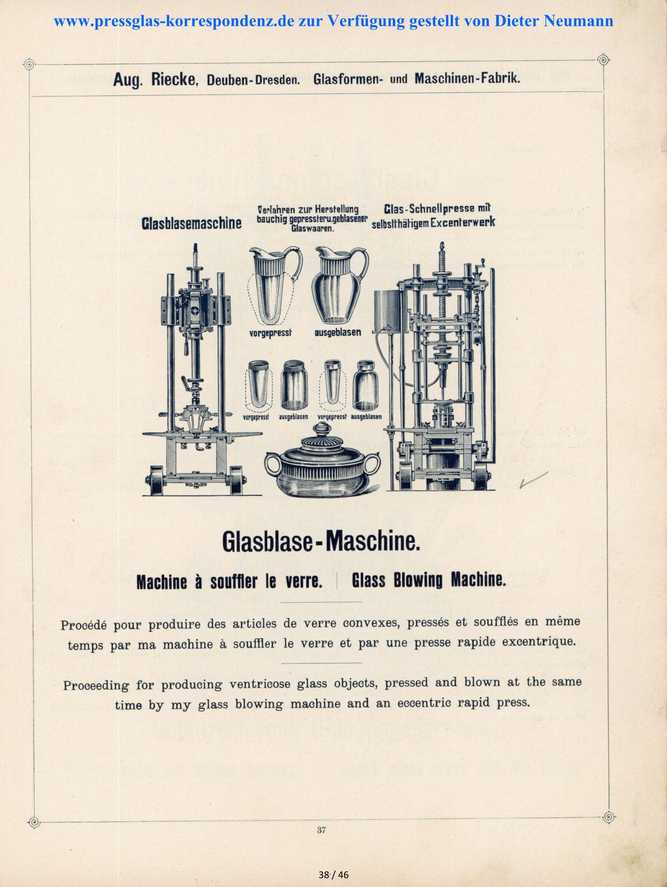 Musterbuch für Glasformen und Maschinen Aug.Riecke
