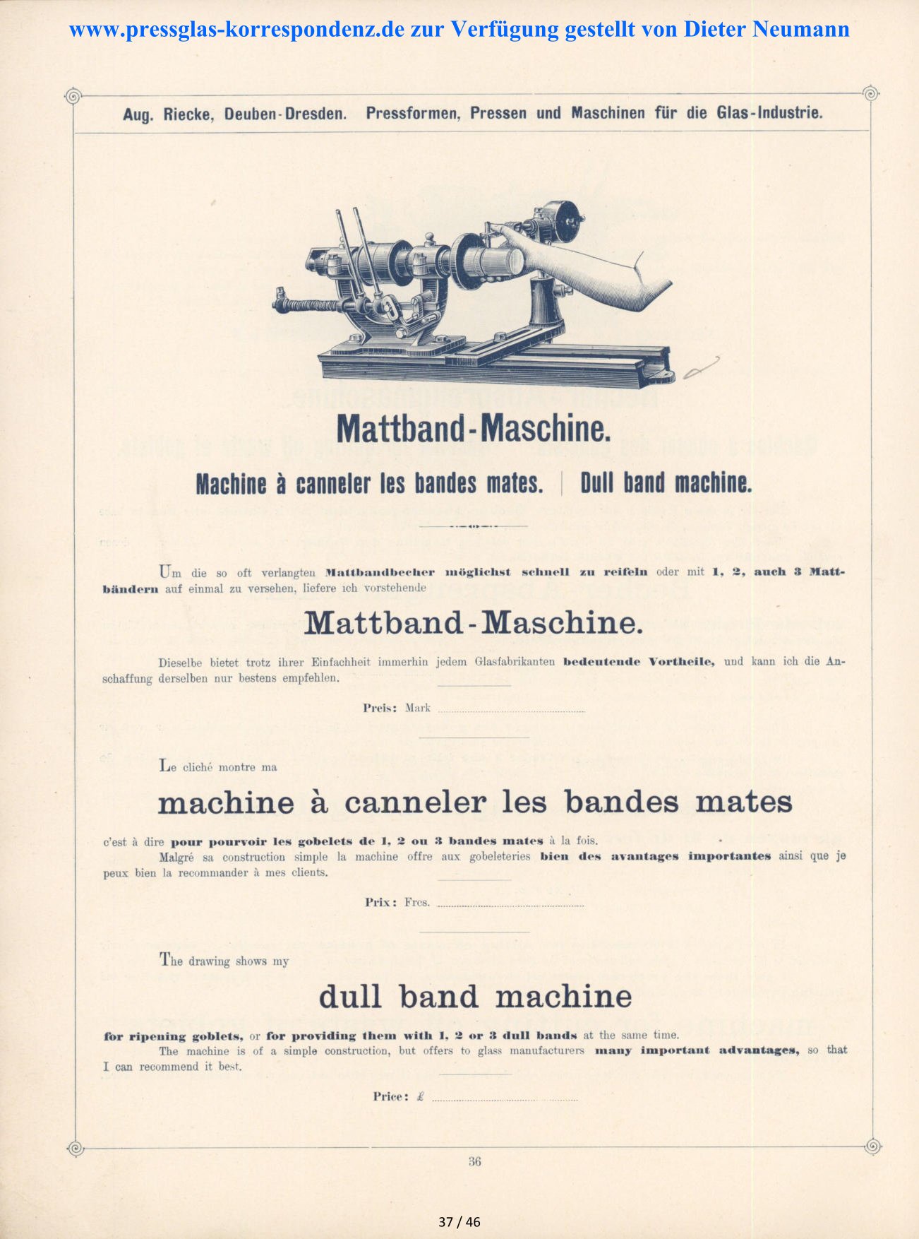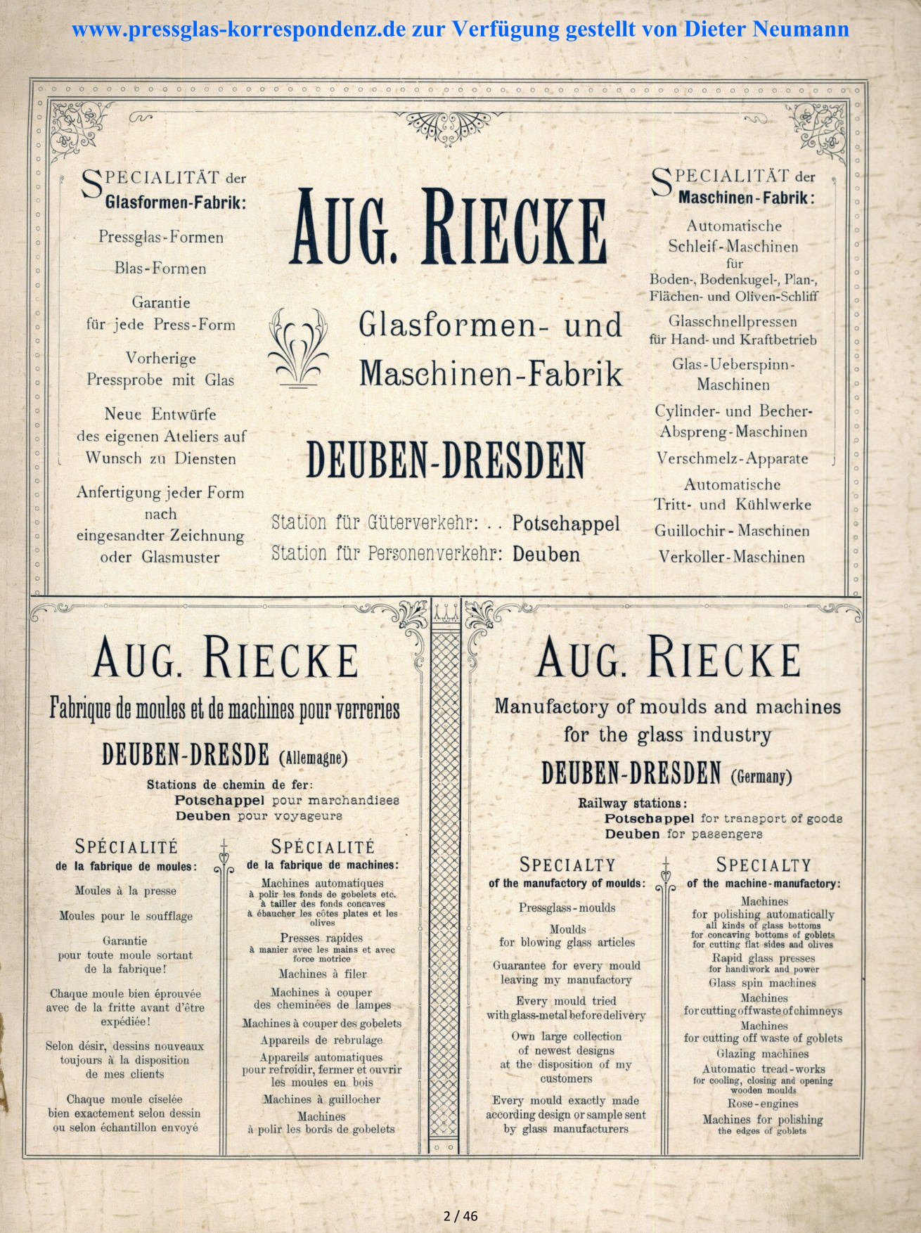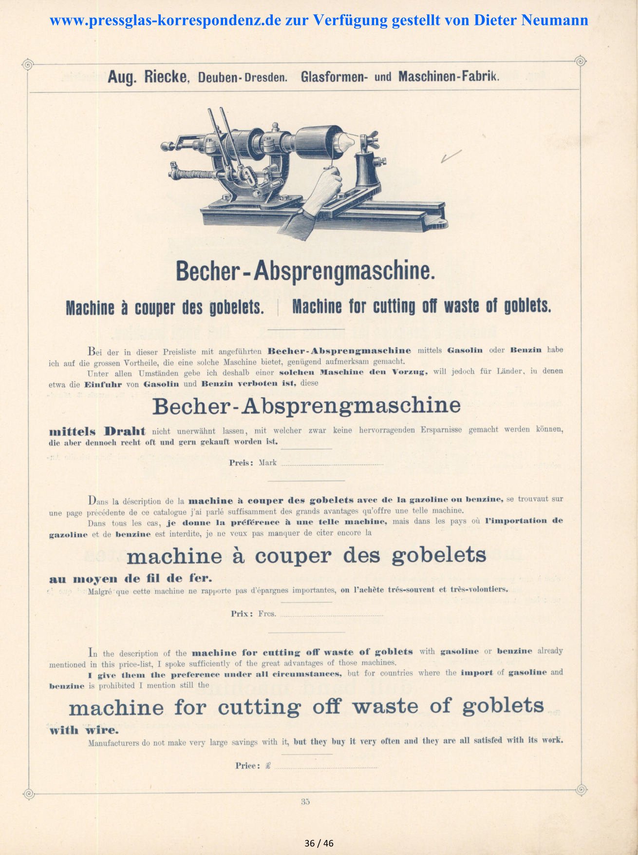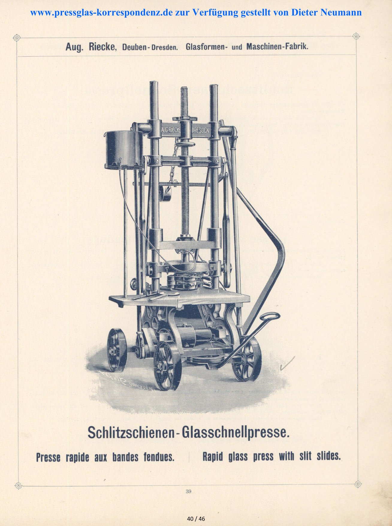 Musterbuch für Glasformen und Maschinen Aug.Riecke